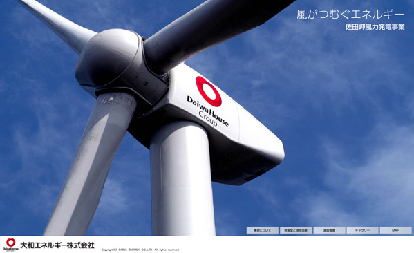 2007.07.20 大和エネルギー株式会社様 佐田岬風力発電事業サイト「風がつむぐエネルギー」公開しました 最新事例 大和エネルギー株式会社佐田岬風力発電事業サイト「風がつむぐエネルギー」企画・プロデュース・編集・デザイン・構築
