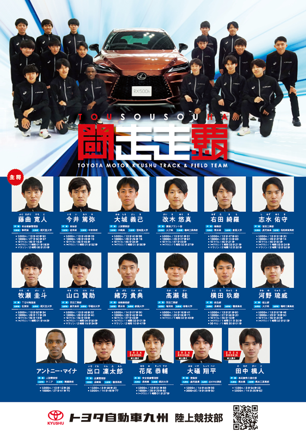 2024.05.20 トヨタ自動車九州株式会社様 陸上競技部 2024年度公式B2ポスター 発行しました 最新事例 トヨタ自動車九州株式会社陸上競技部 2024年度公式B2ポスター企画・編集・デザイン・制作・印刷