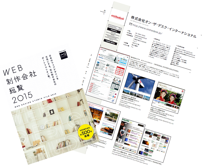 2015.02.01 MdN『Web制作会社総覧2015』に掲載されました お知らせ 全国の有力Web制作会社約500社を紹介するMdN社発行の『Web制作会社総覧2015』に当社のポートフォリオが掲載されました。掲載ページは、P078とP284です。