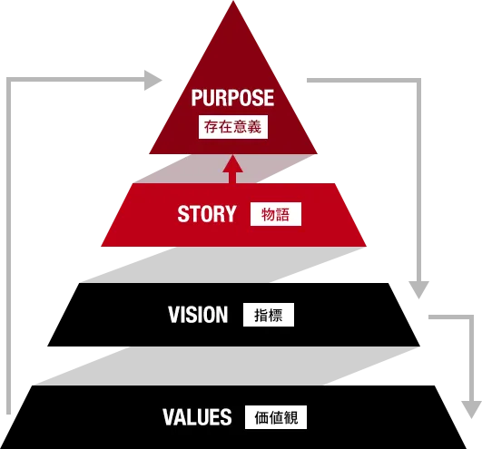 企業の「パーパス(存在意義)」の基盤を成す、その企業固有の「始まり」、「歴史」、「挑戦」、「実績」、また培われて来た「信念」、「想い」、そして現在の「目標」。